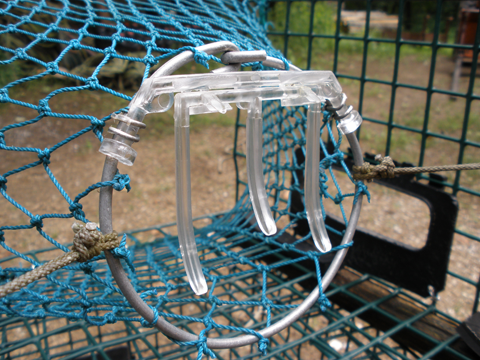 The Hoop Gate allows a lobsterman to fish more efficiently by allowing for longer sets and improved flexibility in hauling schedules. This is especially important in times of high fuel and bait costs. Variables such as breakdowns, being weathered in, and bait going off become less of a concern when using the Hoop Gate since the lobsters cannot escape from the trap over time. Large lobsters tend to rule over smaller lobsters in the parlor, and are often the first to find a way out.
